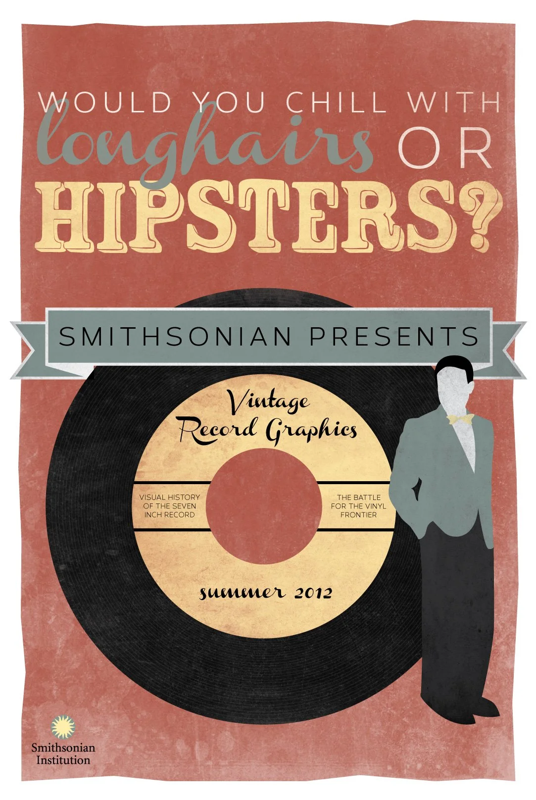 For a Smithsonian exhibit on vintage record graphics, I designed a series of posters that asked one simple question: what would you be spinning in every era? Would you be a mod or a rocker? A beatboxer or a punk?